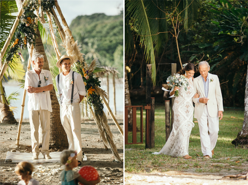 Flami and Cris tied the knot at the March House in Mal Pais, Costa Rica. The wedding was the definition of Beach Boho perfection – with a stunning teepee arch and Flami’s gorgeous gown being my personal favorite touches. The couple exchanged necklaces instead of rings and brought their adorable dog along to join in the festivities. Check out their day and a full list of vendors below!