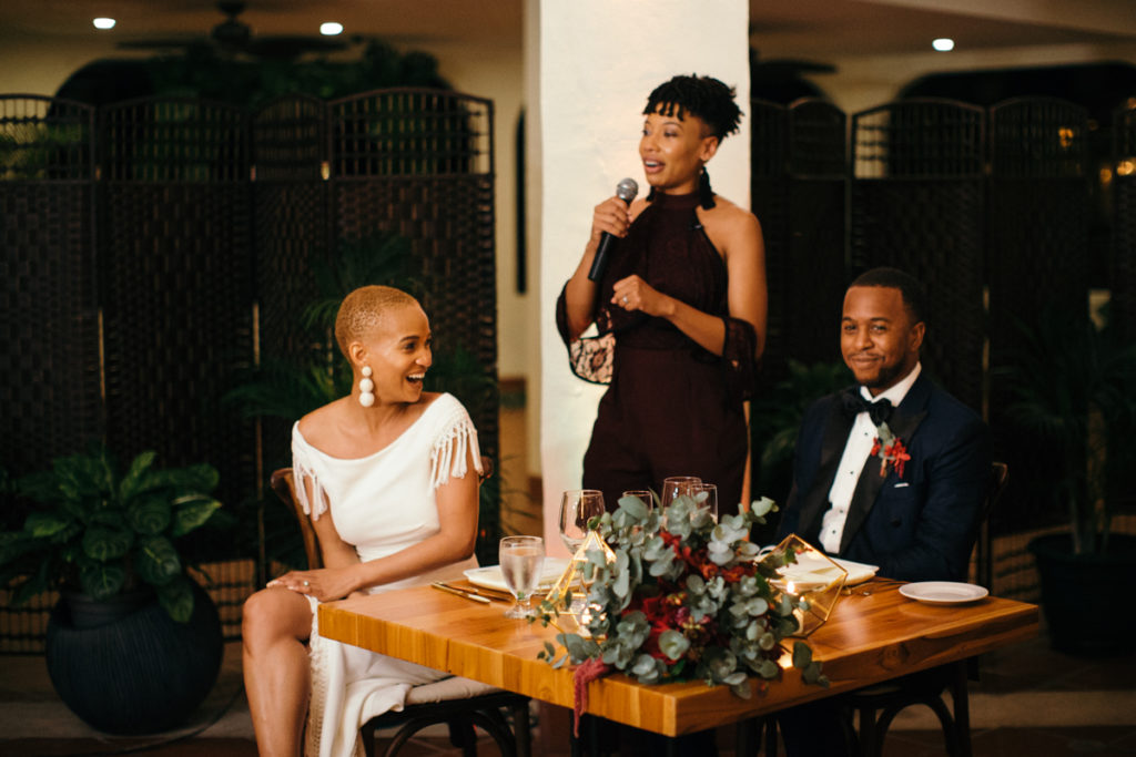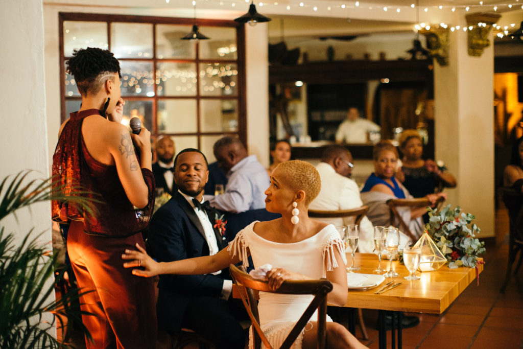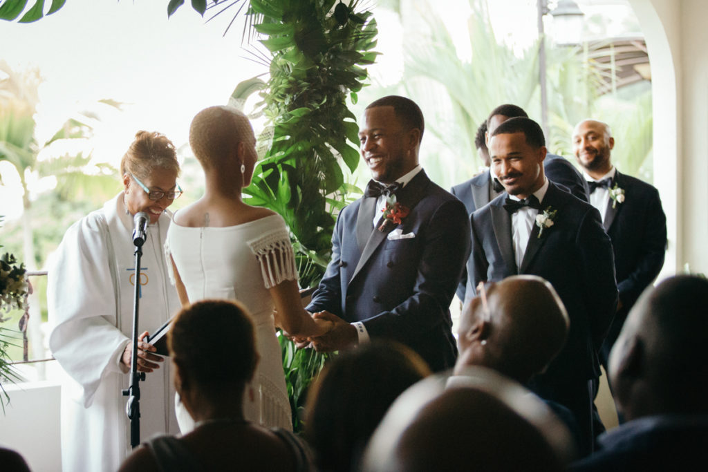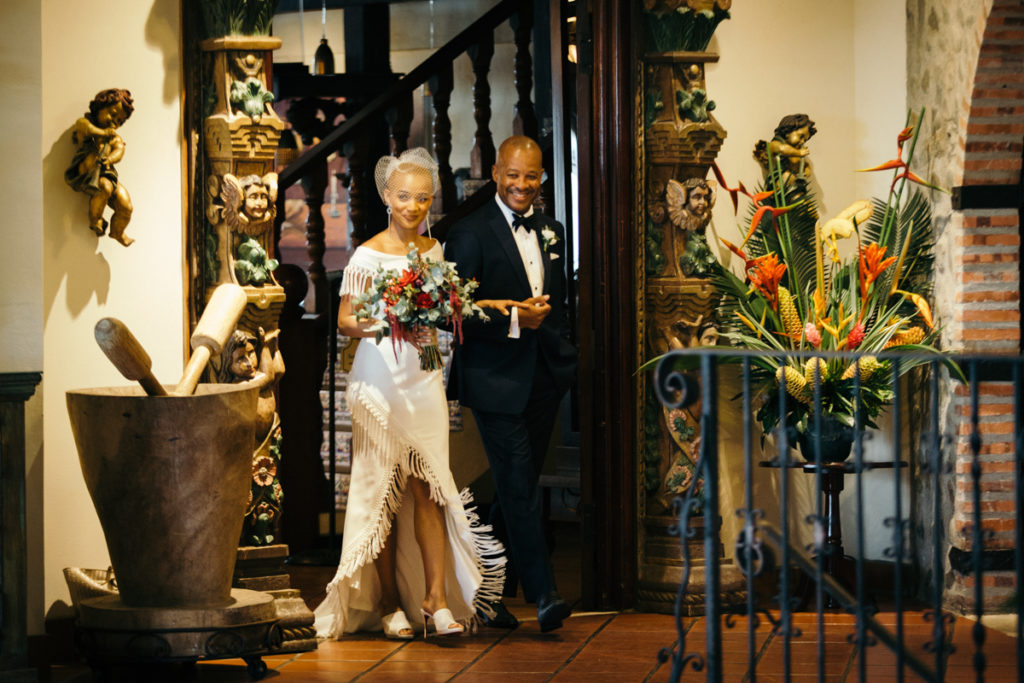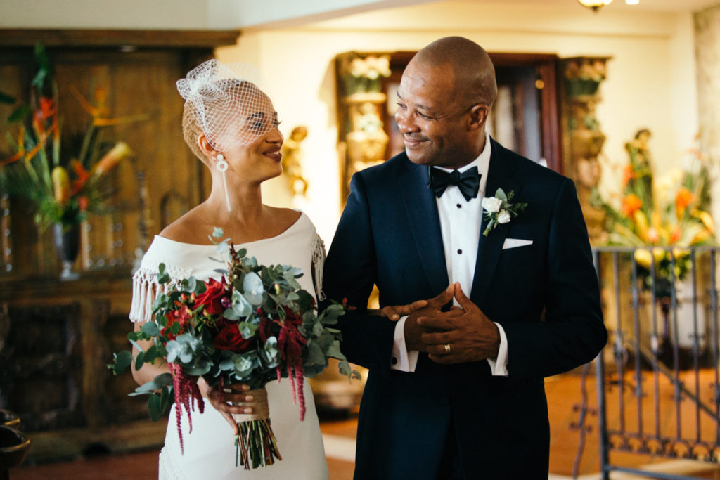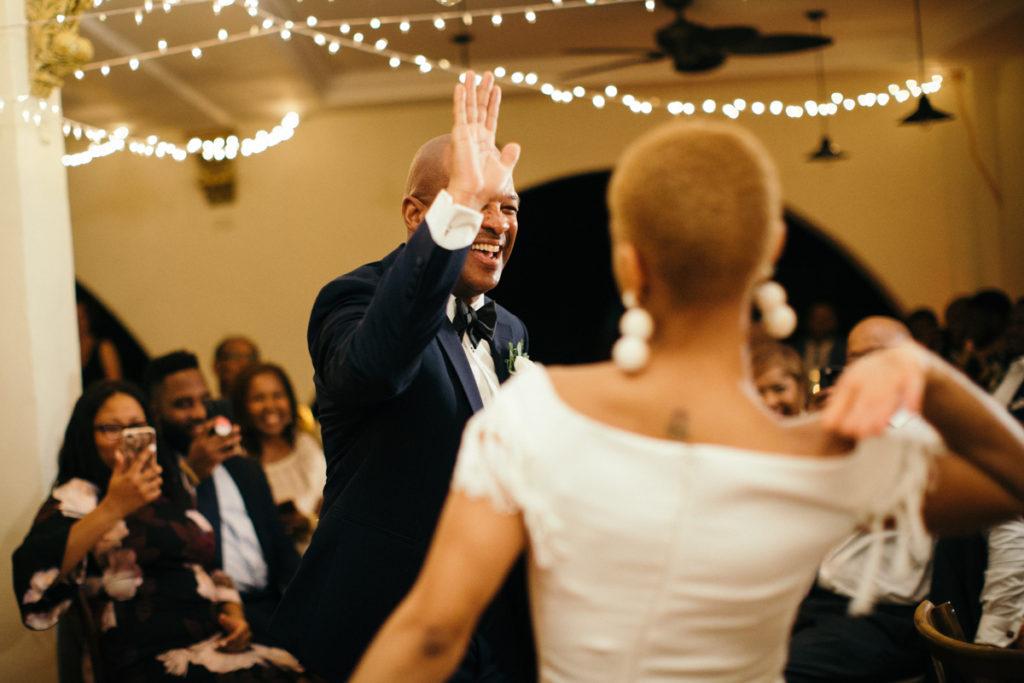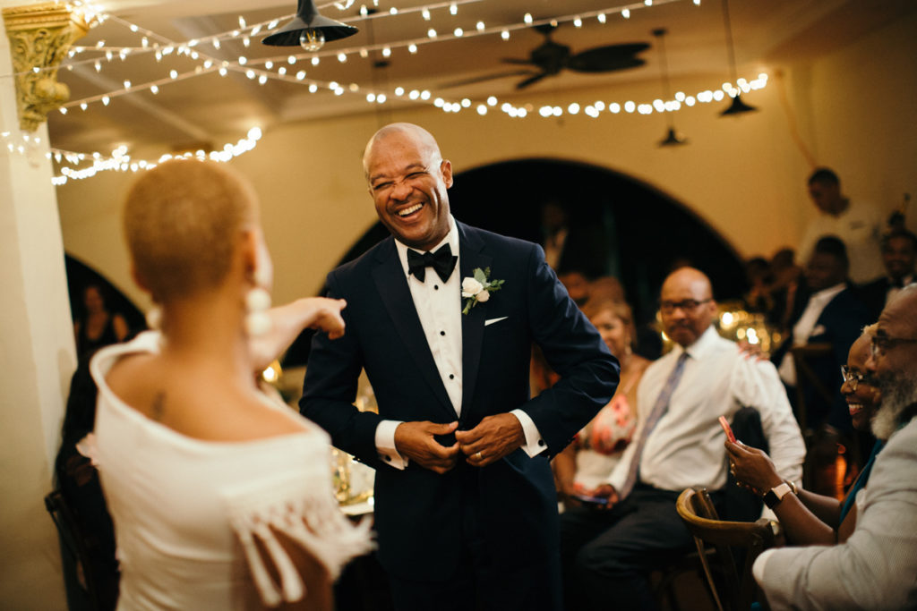 The stage was set for Lauren and Kenny’s wedding at the Parador Resort in Manuel Antonio, Costa Rica. Larissa Banting of Weddings Costa Rica designed and coordinated the beautiful event and it went off without a hitch. Some of my favorite touches from the day (other than the obviously stunning bride and groom) were the bridesmaids’ pantsuits, the vibrant aisle runner for their ceremony and the homage that the couple paid to their heritage by doing the traditional jumping of the broom. In the times of slavery, couples were not allowed to marry and in turn performed a secret ceremony where they would jump the broom. Also not to be missed – one of the sweetest father/daughter first looks I’ve shot thus far.