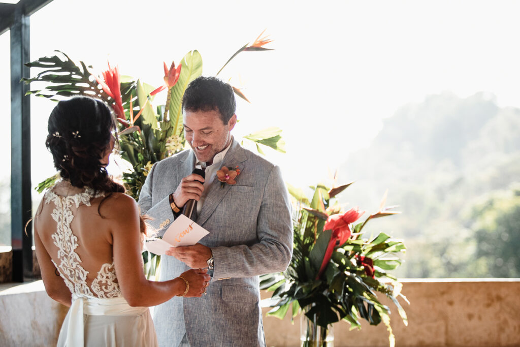 Rachel and Tom chose the 5 floor stunner of a villa, Punto de Vista, to host their gorgeous Manuel Antonio wedding. With the help of the ladies at Tropical Occasions the evening went off without a hitch. The vibe of the day was a colorful mix of love and laughs and matched the couples personality to a T.