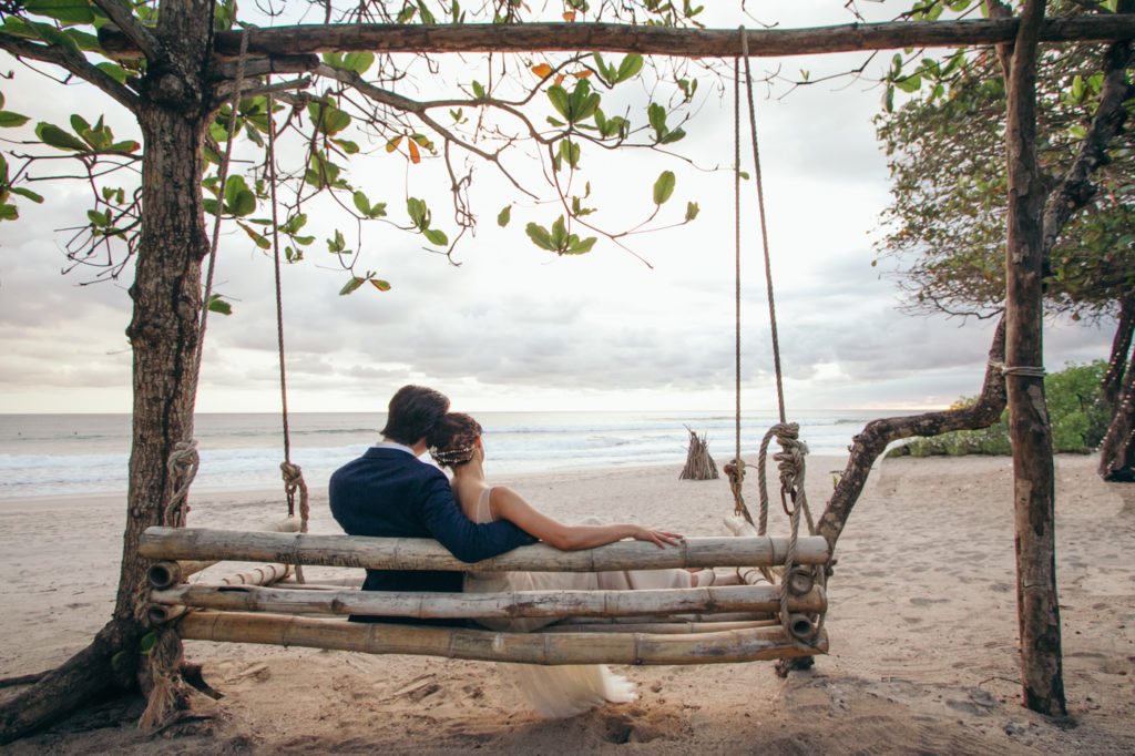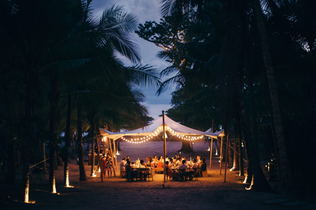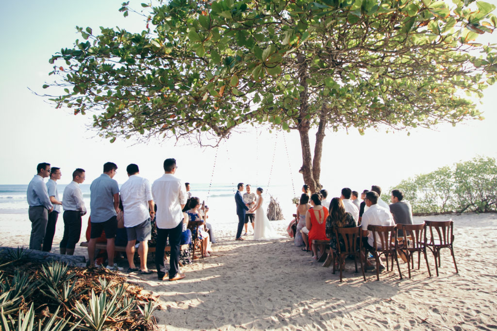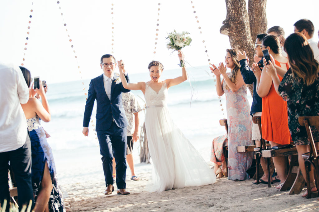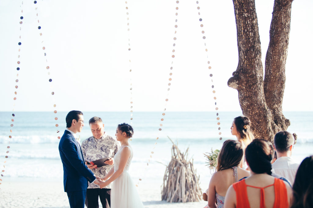 Michelle and Billy rented out the ultra chic Casa Capitan estate on the expansive white sand beaches of Santa Teresa, Costa Rica to say “I Do”. Mal Pais Green Weddings, as usually, styled up this event to the max! I especially loved the personalized Mason jar water glasses and the adorable flower girl crown. And let’s not forget about the food and drinks! They were both on point for this affair as well; catering done by the uber talented Soma Chefs (don’t miss the sexy dessert plate) and drinks and merriment were served up by Drift Bar. Event rentals and Flowers by Jungle Glitter.