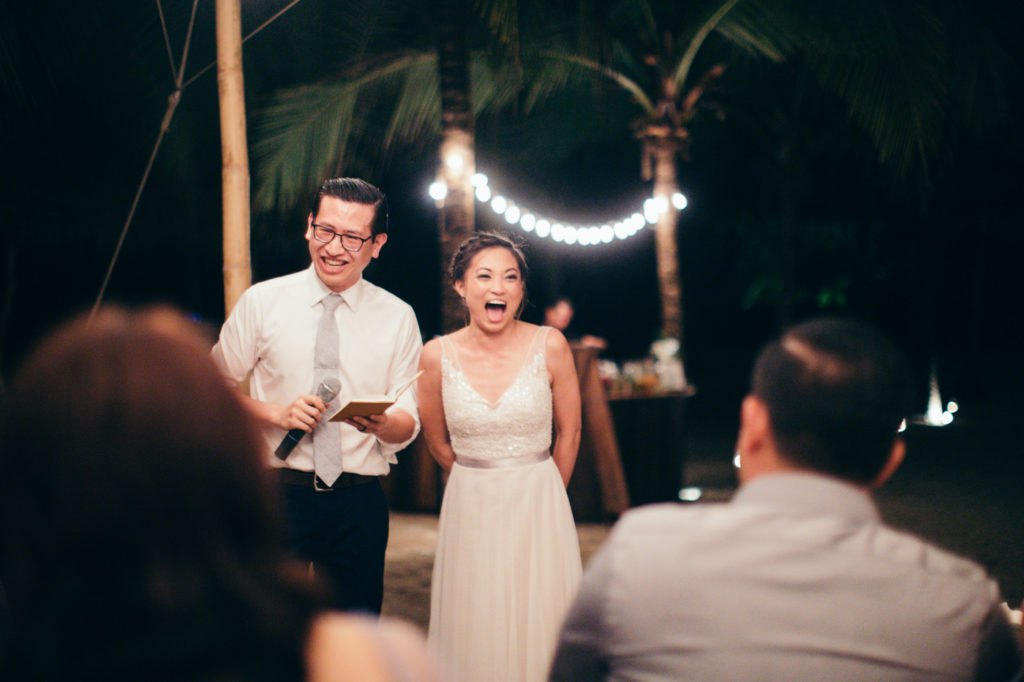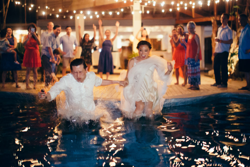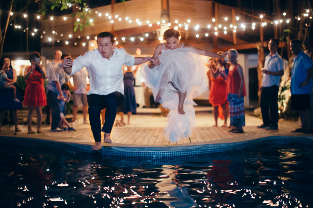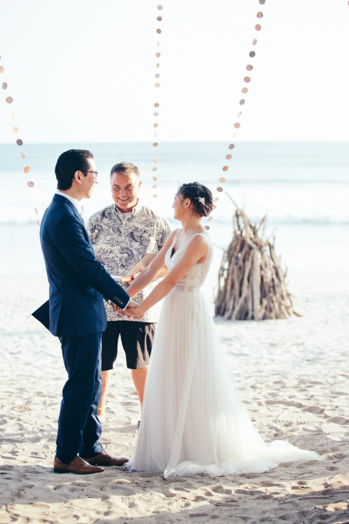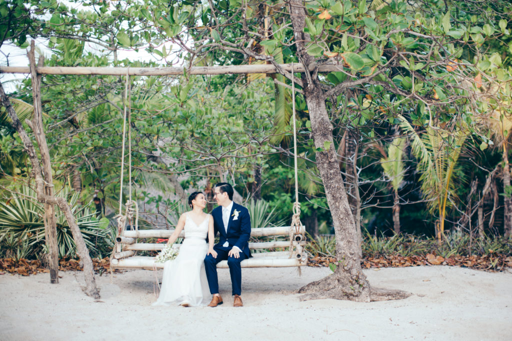 Michelle and Billy rented out the ultra chic Casa Capitan estate on the expansive white sand beaches of Santa Teresa, Costa Rica to say “I Do”. Mal Pais Green Weddings, as usually, styled up this event to the max! I especially loved the personalized Mason jar water glasses and the adorable flower girl crown. And let’s not forget about the food and drinks! They were both on point for this affair as well; catering done by the uber talented Soma Chefs (don’t miss the sexy dessert plate) and drinks and merriment were served up by Drift Bar. Event rentals and Flowers by Jungle Glitter.