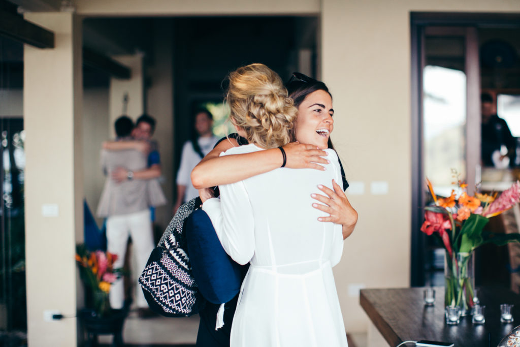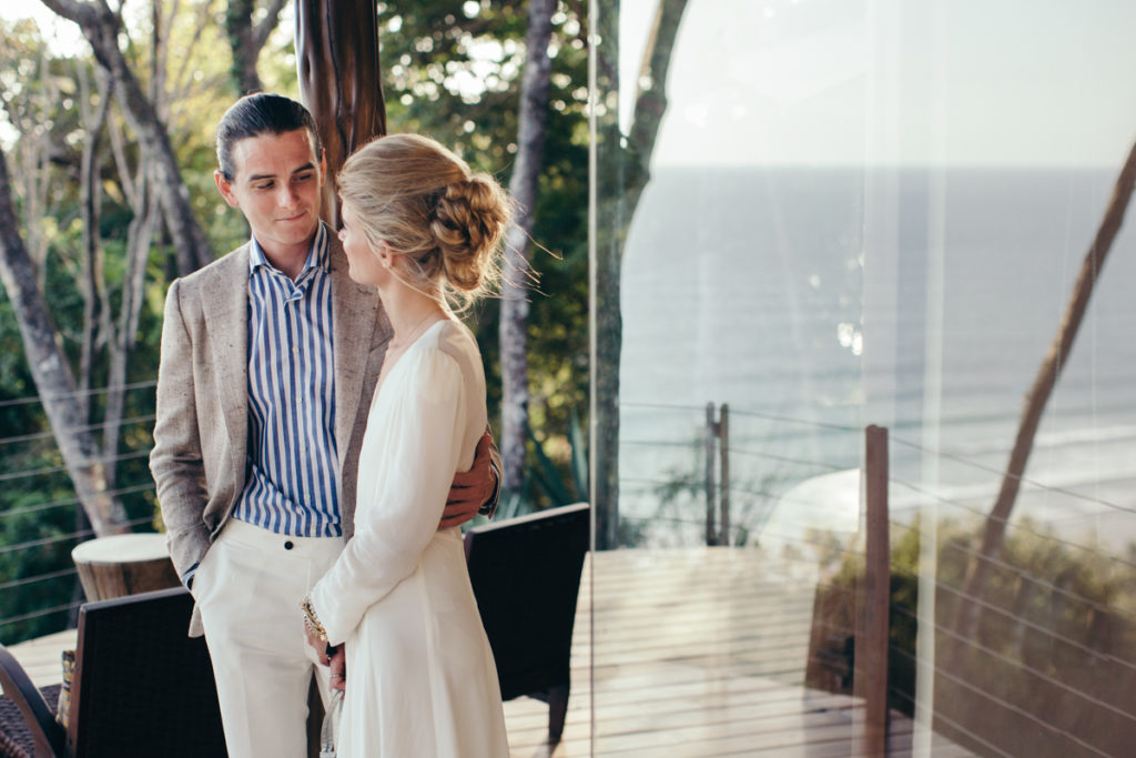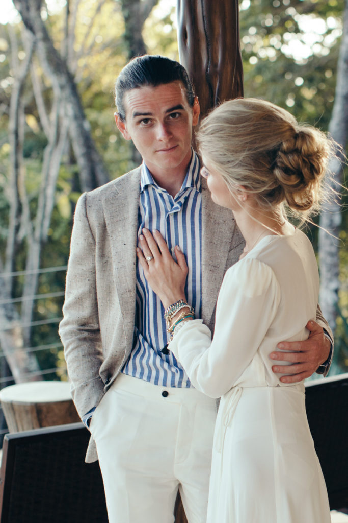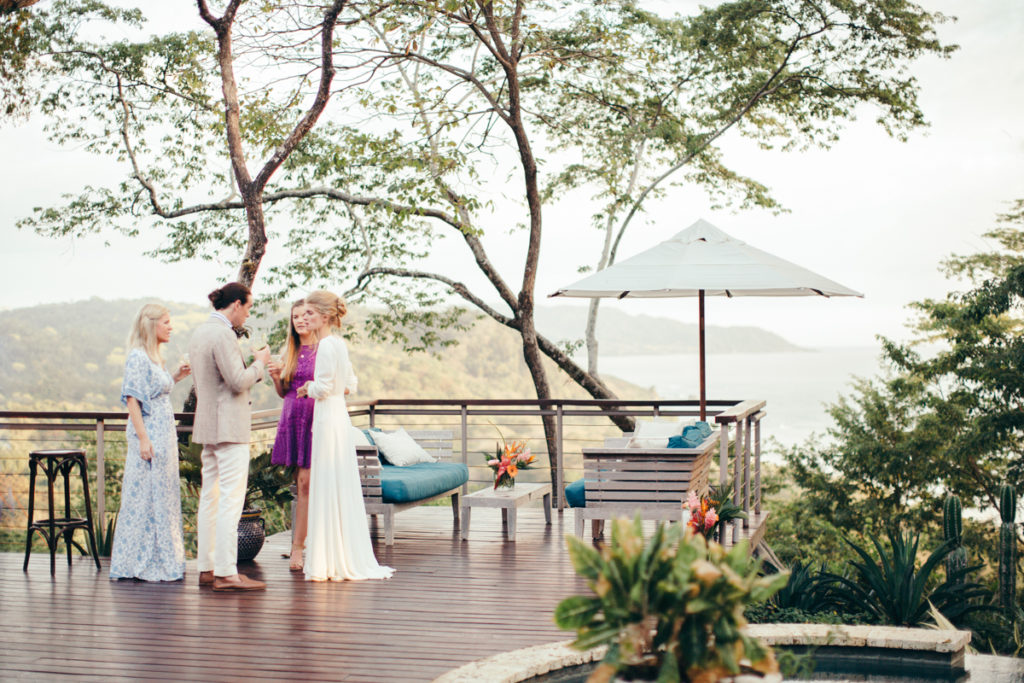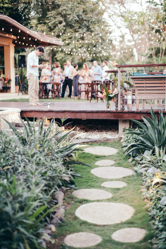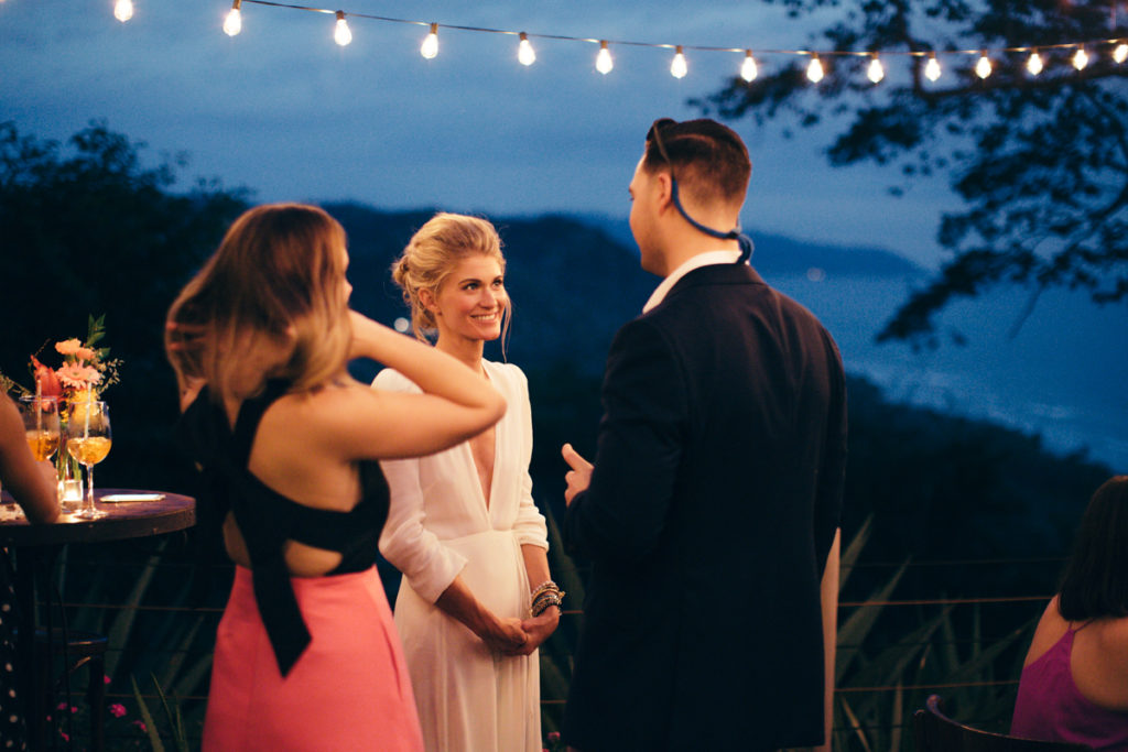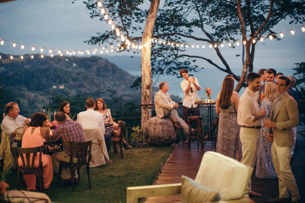 Shannon and Patrick kicked off their wedding festivities with an “Open Mic Night” pre-wedding celebration at Rancho Cielo (killer view!). As soon as this couple walked through the doors I knew that this wedding was going to be something amazing! They were OOZING with style and as sweet as can be. Shannon donned a to-die-for deep V white dress and lovely fringed boho shoes, while Patrick looked super chic in stripes and a tweed coat. Their family and friends gathered in the hills of Hermosa to enjoy yummy appetizers by Soma Chefs and drinks by Drift Bar. The event was brought together by Mal Pais Green Weddings, and flowers and rentals by Jungle Glitter.